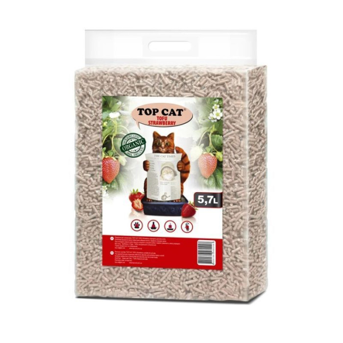 Соевый наполнитель для кошачьего туалета TOP CAT TOFU ТОФУ с ароматом клубники 5,7л