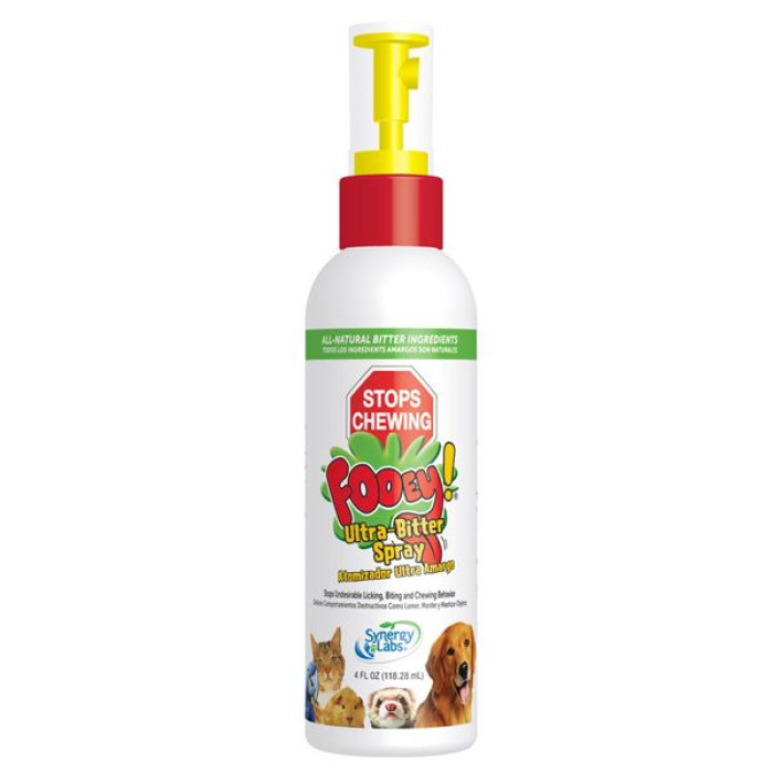 SynergyLabs Fooey – самое горькое на земле средство позволяет избавить животное от нежелательной привычки лизать, кусать и жевать предметы домашнего обихода, а также себя.