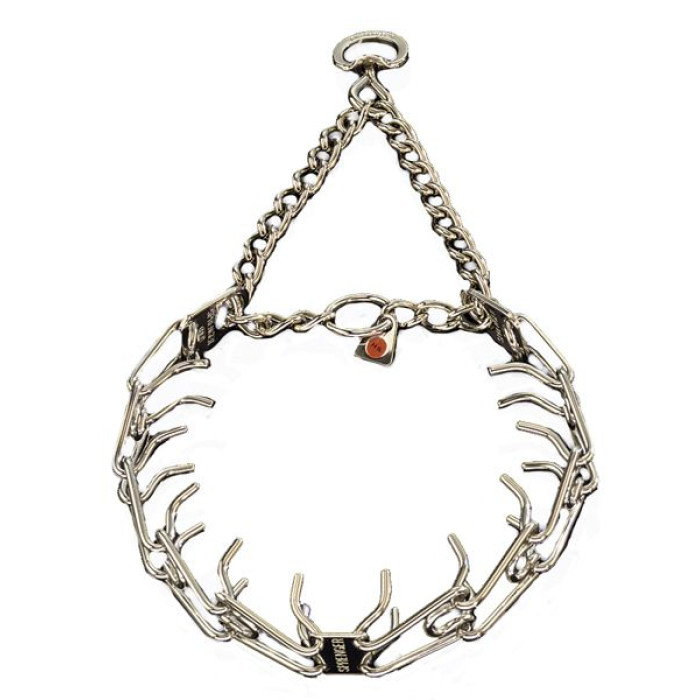 Ошейник сделан из нержавеющей стали, он не травмирует и не окрашивает шерсть в местах соприкосновения, подходит для ношения в любых погодных условиях. Ошейник необходимо снимать после прогулки или тренировки. Подойдет собакам с шерстью любого типа, длины и густоты. Со строгим ошейником контролировать питомца во время прогулки будет легко, а карабин поможет легко снимать-надевать ошейник на собаку.