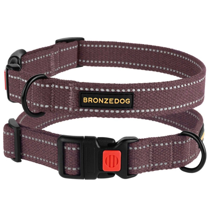 Ошейник для Собак Bronzedog Сotton Рефлекторный х/б Брезент Черри L 35-45 см