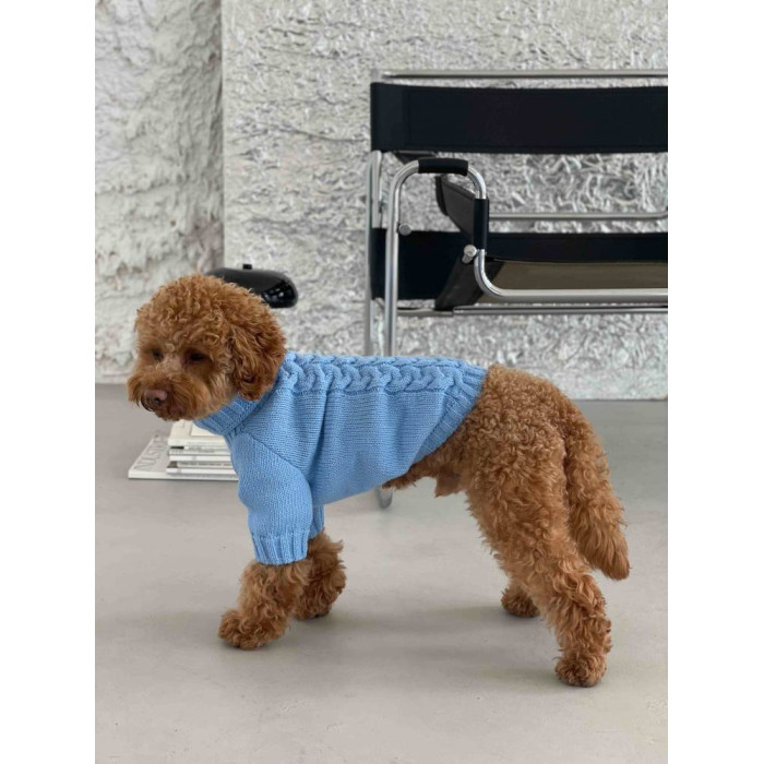 Свитер вязаный Косичка голубой Y-284