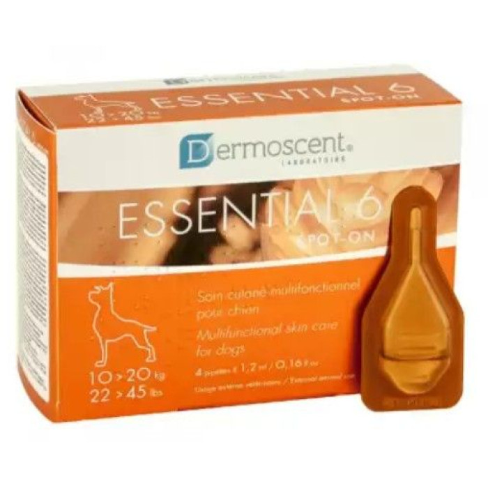 Essential 6® точечное средство № 1. 1 точечный кожно-косметический продукт для собак и кошек, обеспечивающий простое и эффективное решение кожных дисбалансов (также называемых керато-себорейными расстройствами или проблемами) и их последствий: тусклая или ломкая шерсть, сухая или жирная шерсть, плохая запахи и т. д.