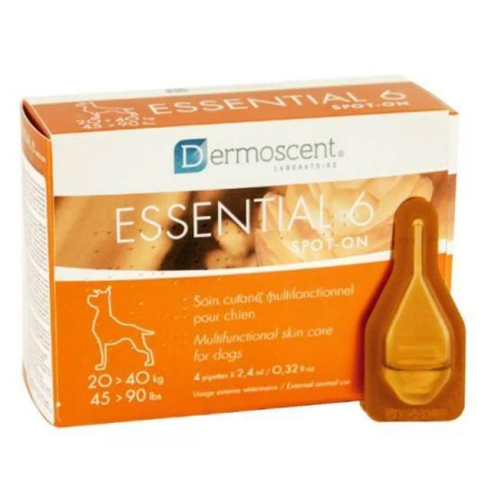 Essential 6® точечное средство № 1. 1 точечный кожно-косметический продукт для собак и кошек, обеспечивающий простое и эффективное решение кожных дисбалансов (также называемых керато-себорейными расстройствами или проблемами) и их последствий: тусклая или ломкая шерсть, сухая или жирная шерсть, плохая запахи и т. д.