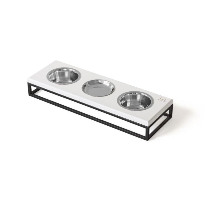 Три миски на подставке Lunch Bar White Wood + Black, белое дерево с черным металом S (54x18x7cm, 0,45л)