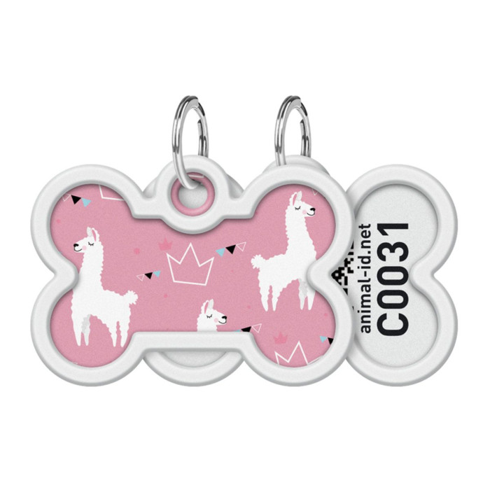 Адресник для собак та котів металевий WAUDOG Smart ID c QR паспортом, малюнок "Лами", кістка, Д 40 мм, 28 мм