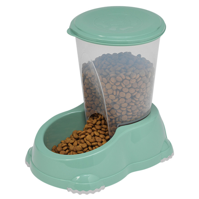Автогодівник ідеально підходить для сухого корму. Кришка, що щільно закривається, перешкоджає вивітрюванню запаху, висиханню корму і попаданню в нього сторонніх предметів. Автоматична подача води чи корми здійснюється механічним способом, тобто. без датчиків, сенсорів, таймерів, мікрофонів, батарей та інших атрибутів автоматичних пристроїв. У міру з'їдання вихованцем корму, в миску надходитиме нова порція в потрібній кількості, дозатор відсутня. Спеціальні прогумовані ніжки та стійка широка основа автогодівниці запобігають її ковзанню по підлозі або перевертанню.