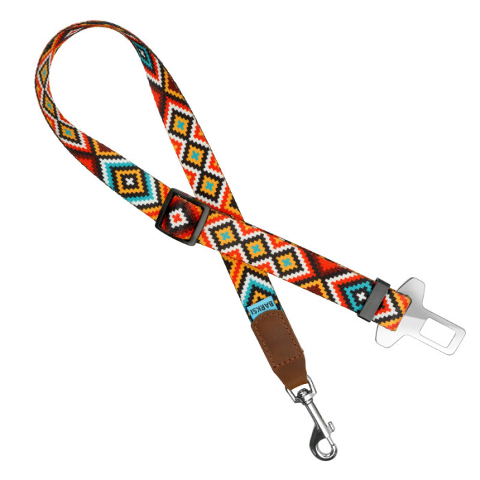 Автомобільний Ремінь Безпеки для Собак Barksi Нейлоновий Принтований Гуцульский Помаранчевий, S, 46-80 см