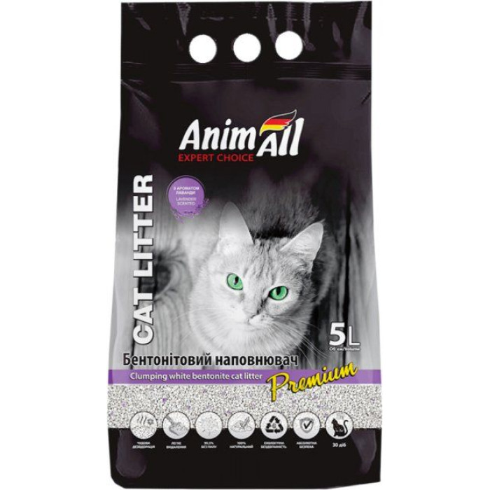 Бентонітовий наповнювач AnimAll білий, з ароматом лаванди 5 л
