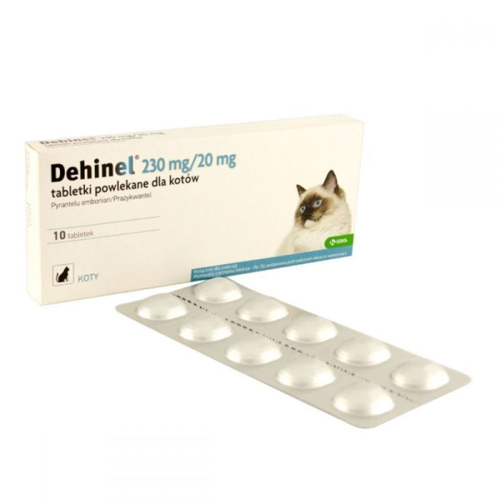 Дехінел Таблетки КРКА для кішок призначають кішкам в дозі 1 таблетка на 4 кг маси тварини (5 мг празиквантель і 57,5 мг пірантелу ембонат на 1 кг маси тварини).