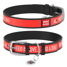 Нашийник WAUDOG Design з малюнком "Кленовий лист", преміум шкіра, метал. пряжка, чорний XS1 19-25 см