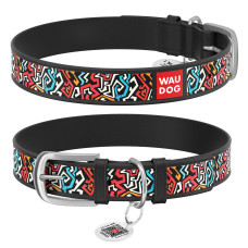 Нашийник WAUDOG Design з малюнком "Кленовий лист", преміум шкіра, метал. пряжка, чорний XS1 19-25 см