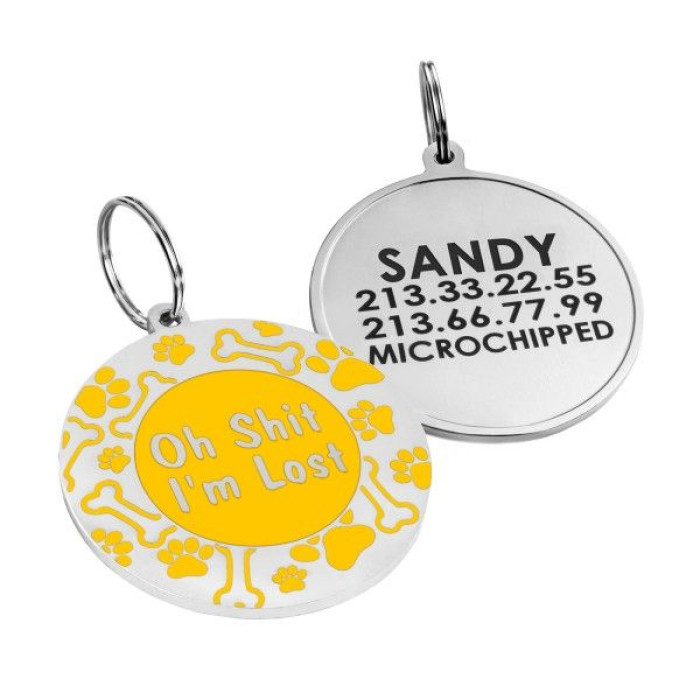 Емальований Адресник для Собак Oh Shit I'm Lost Жовтий