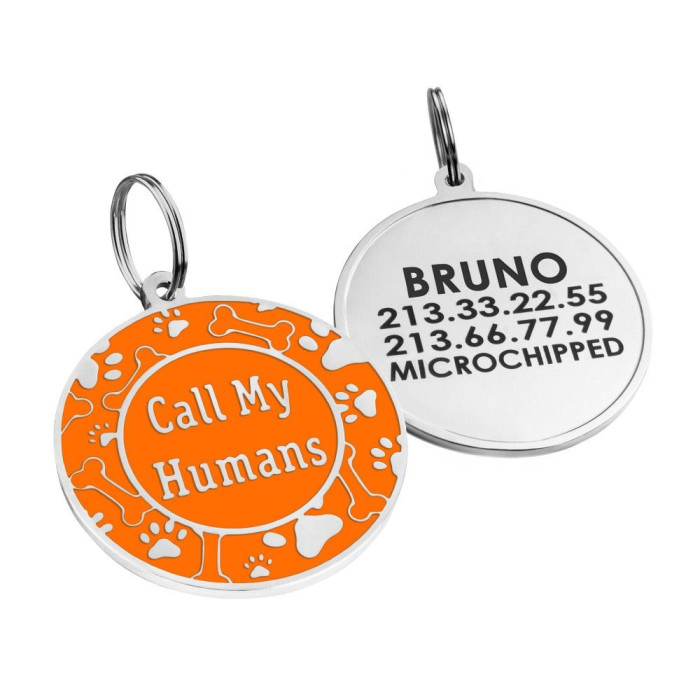 Емальований Адресник для Собак Call My Humans Помаранчевий