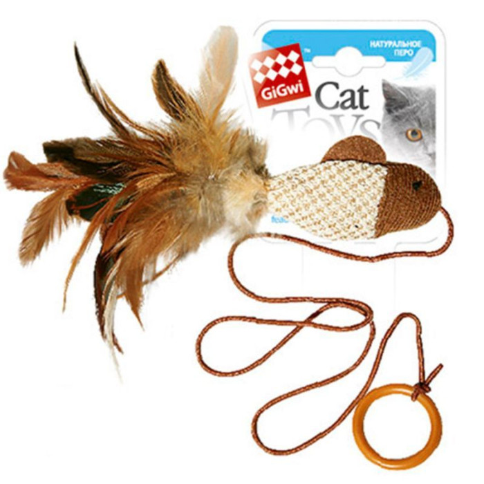 Іграшка для котів Дразнилка-рибка на палець GiGwi Teaser, перо, текстиль, 7 см