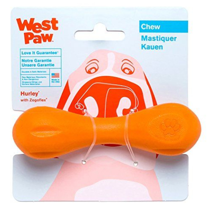 Hurley Dog Bone гарантовано міцна іграшка для собак, і оскільки вона гнучка, собакам безпечно її гризти та апортувати. Ніяких зламаних зубів, тільки розваги.