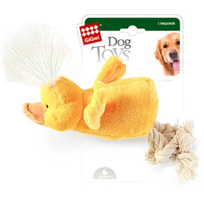 Іграшка для собак Качка з пищалкою GiGwi Catch&Fetch, плюш, мотузка, 15 см
