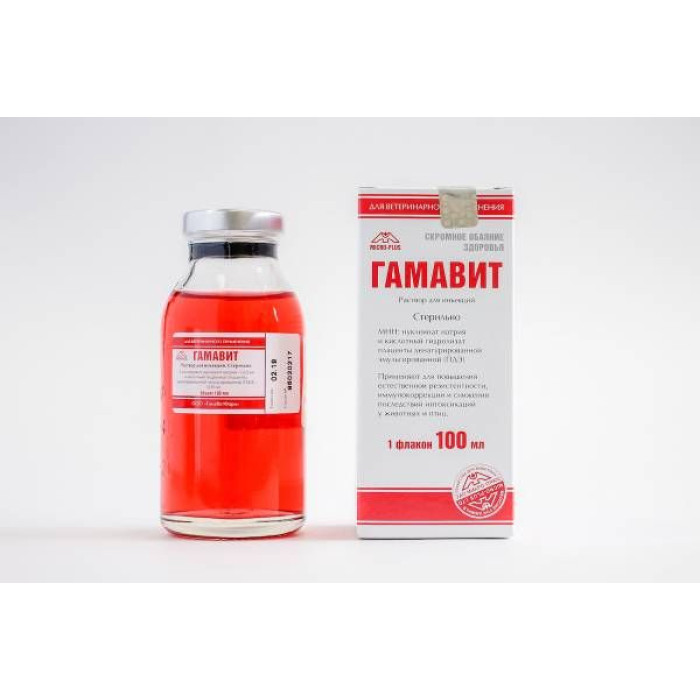 Гамавіт містить комплекс біологічно активних речовин, завдяки яким оптимізує обмінні процеси в організмі білковий, вітамінний і мінеральний), нормалізує формулу крові, підвищує бактерицидну активність сироватки крові, має імуномодулюючу та загальну біотонізуючу дію. Є біогенним стимулятором та адаптогеном, знижує постнатальну смертність, підвищує життєздатність потомства, підвищує працездатність м'язів та стійкість тварин до підвищених навантажень та стресу. Є джерелом субстратів метаболізму, сприяє збільшенню росту. Препарат застосовують для профілактики та лікування різних захворювань як біотонізуючий засіб: при анеміях, гіповітамінозах, при інфекції інвазійних захворюваннях, піометрі, при отруєннях, у післяопераційний період, при токсикозах вагітності, пологах,