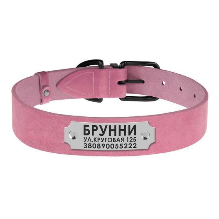 Цей нашийник може бути укомплектований адресником на заклепках з можливістю нанесення до 4 рядків тексту залежно від його розміру.