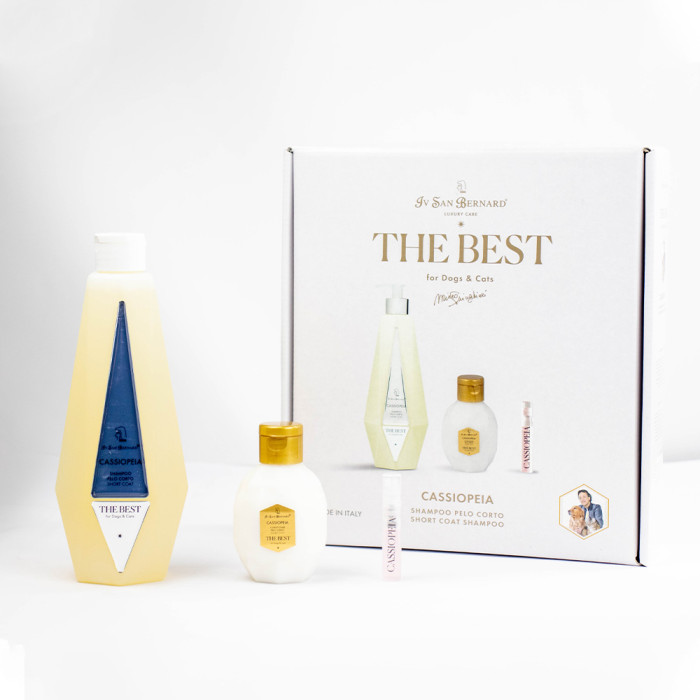 Шампунь CASSIOPEIA SHORT - Шампунь для тварин з короткою шерстю. Містить в собі колаген акації, що сприяє регенерації шкіри та посилене виробництво власного колагену. Екстракт акації забезпечує додаткове живлення шерсті, а його в'яжучі властивості допомагають зменшити лупу.