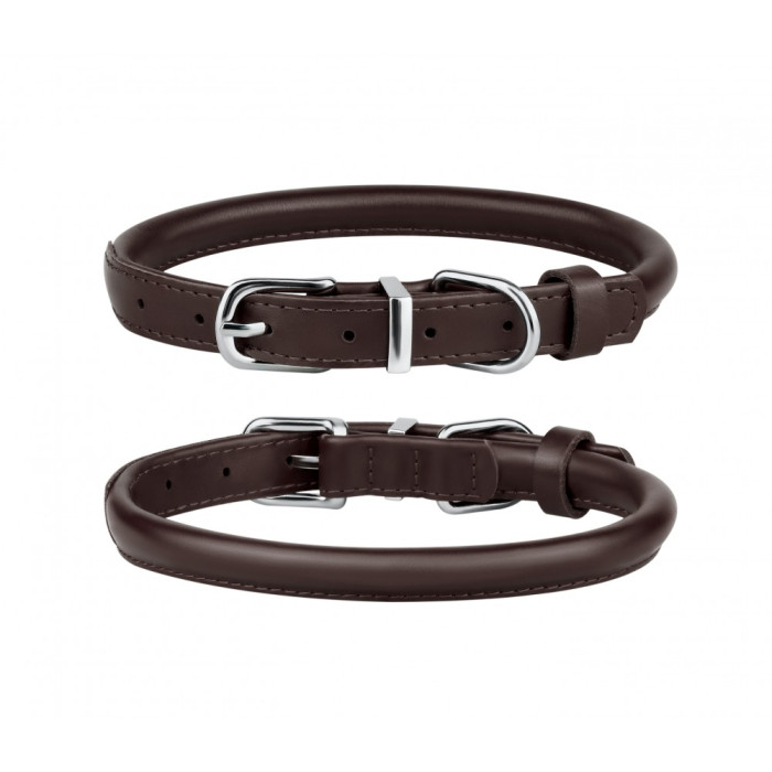 Нашийник для собак круглий шкіряний Темно-Коричневий L, 38-48 см
