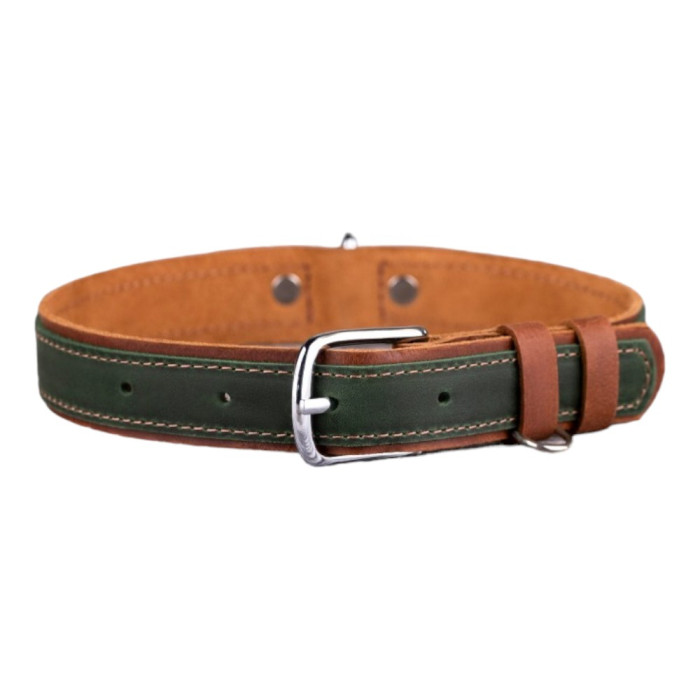 Нашийник для собак шкіряний Crazy підклеєний Зелений M 33-43 см
