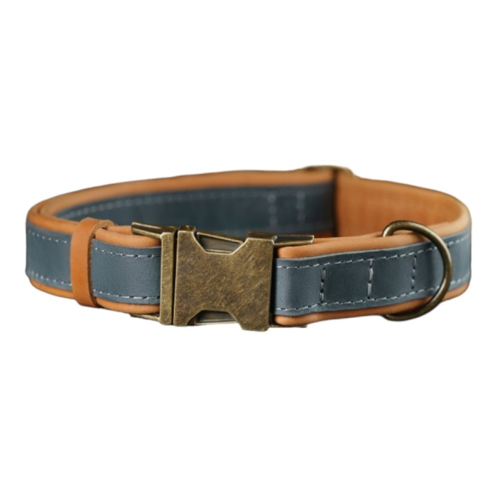 Нашийник для собак шкіряний підклеєний Блакитний S 25-35 см