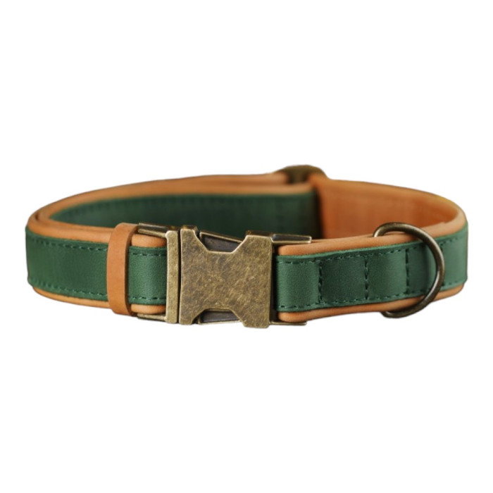 Нашийник для собак шкіряний підклеєний Зелений L 38-48 см
