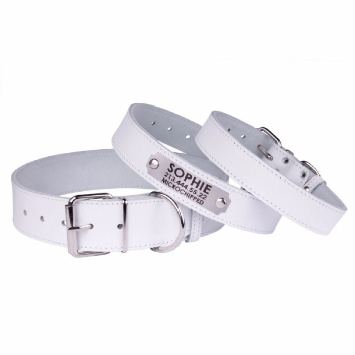 Нашийник для собак шкіряний "Весна" Білий, M 33-41 см
