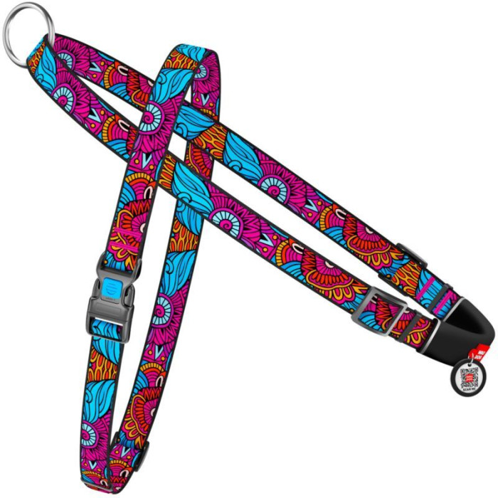 Нейлонова шлейка з ручкою для собак WAUDOG Nylon із QR паспортом, з малюнком Літо S 45-60 см