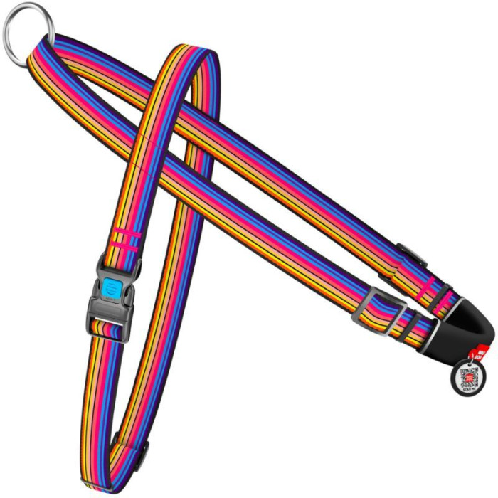 Нейлонова шлейка з ручкою для собак WAUDOG Nylon з паспортом QR, з малюнком Лінії 1 S 45-60 см