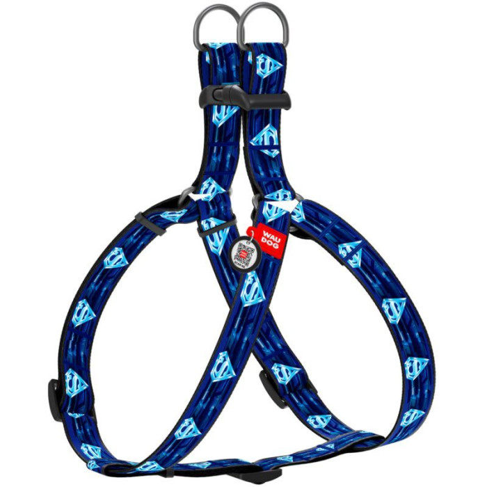 Нейлонова шлея WAUDOG Nylon з QR паспортом, малюнок "Супермен 1", для собак та кішок M 50-80 см