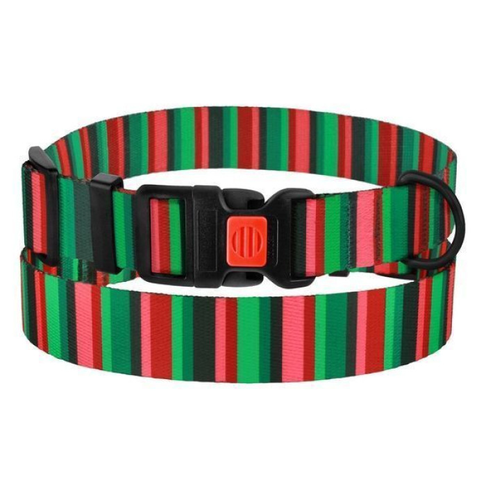 Нашийник для собак Urban нейлоновий у смужку з пластиковою пряжкою, червоно-зелений