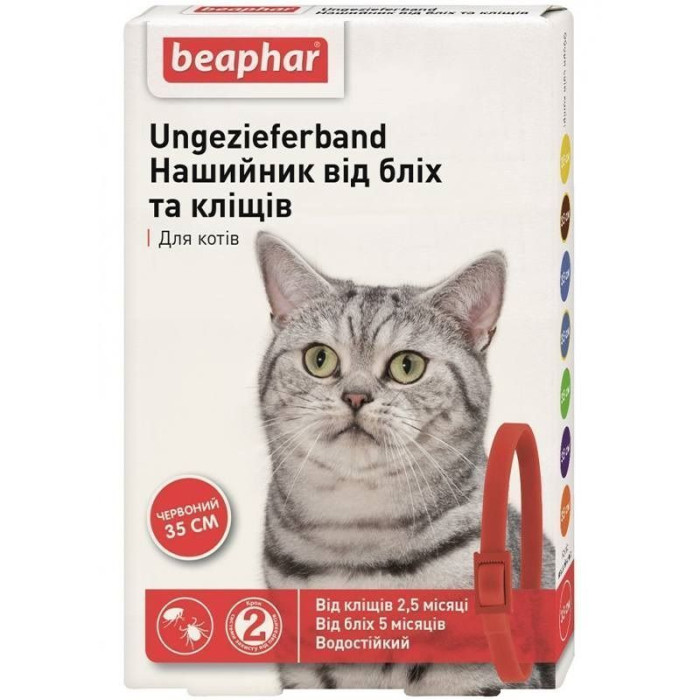 Нашийник від бліх та кліщів для котів Beaphar Flea&Tick Collar 35 см, червоний