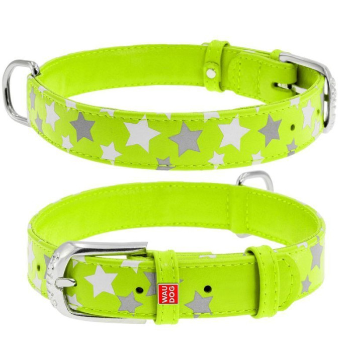 Нашийник WAUDOG Glamour з візерунком "Зірочка", Салатовий XS 19-25 см