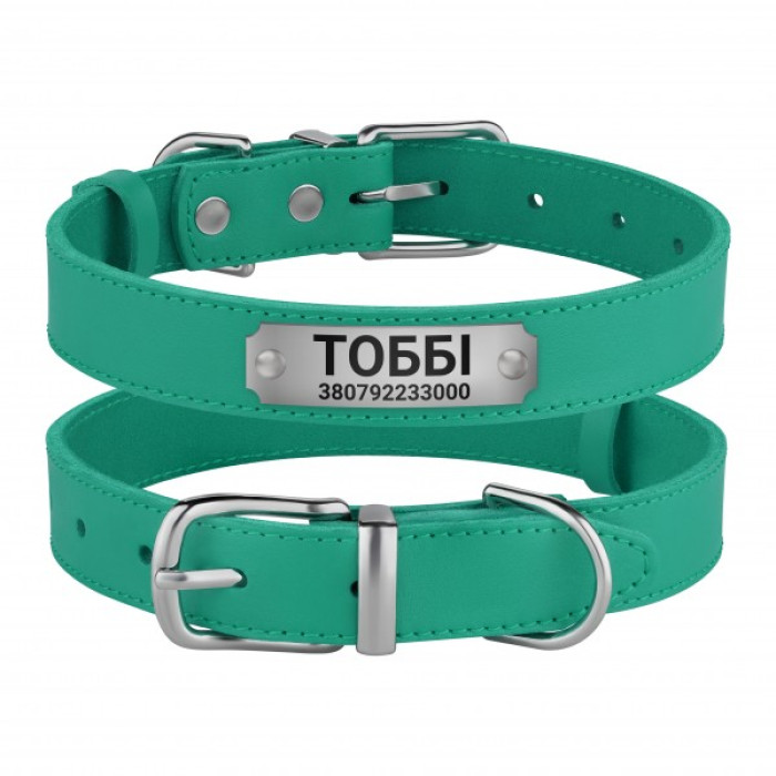 Нашийник для Собак Шкіряний Classic з Хромованою Фурнітурою Бірюзовий S 28-36 см