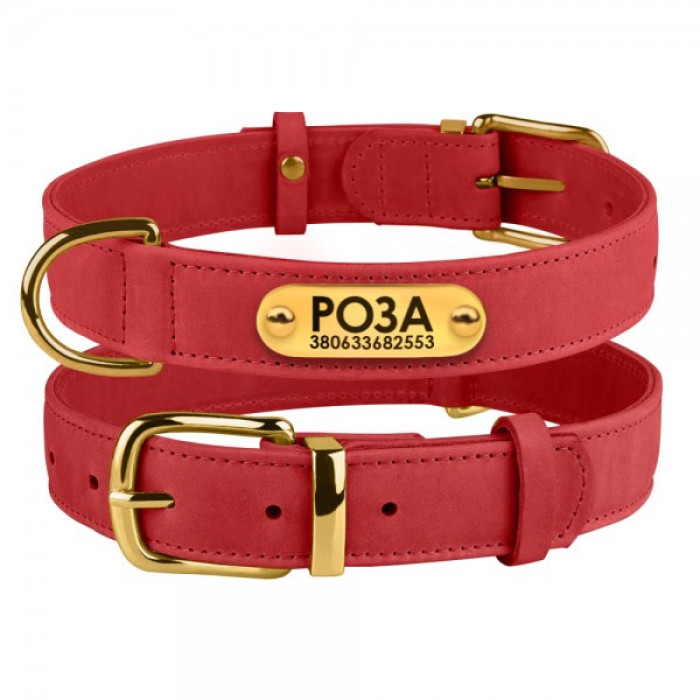 Нашийник для собак шкіряний Crazy Червоний L 38-49 см