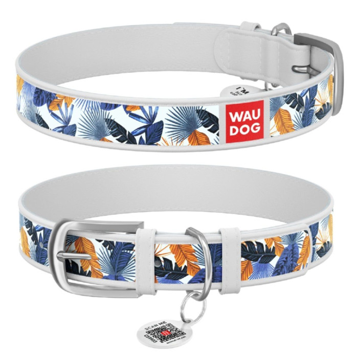 Нашийник WAUDOG Design з малюнком "Джунглі", преміум шкіра, метал. пряжка, білий XL 46-60см