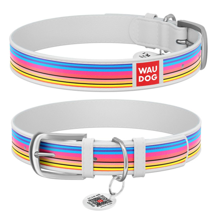 Нашийник WAUDOG Design з малюнком "Лінії 1", преміум шкіра, метал. пряжка, білий L 38-49см