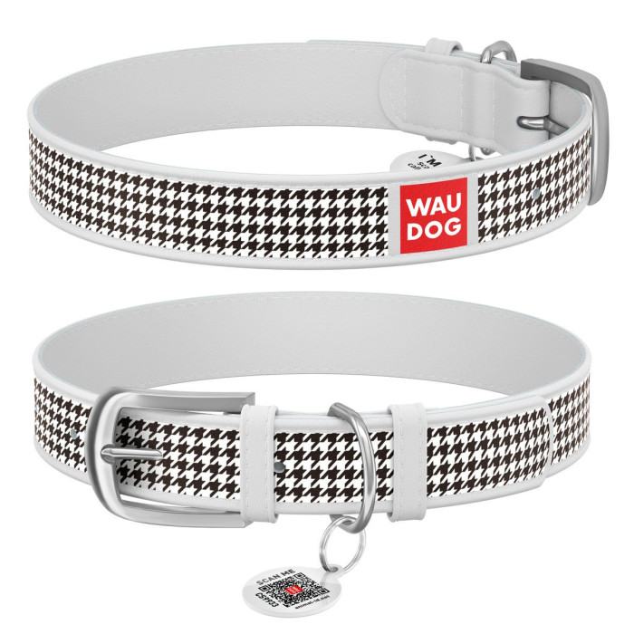 Нашийник WAUDOG Design з малюнком "Шанель", преміум шкіра, метал. пряжка, білий L 38-49см