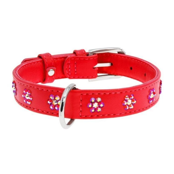 Нашийник WAUDOG Glamour з клейовими стразами "Квіточка", червоний S 27-36 см