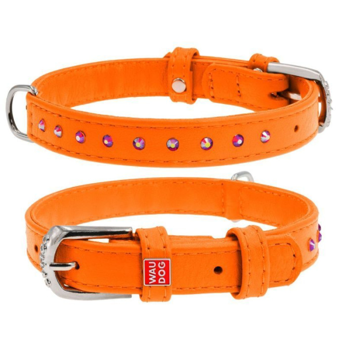 Нашийник WAUDOG Glamour з клейовими стразами, Помаранчевий XS1 18-21 см