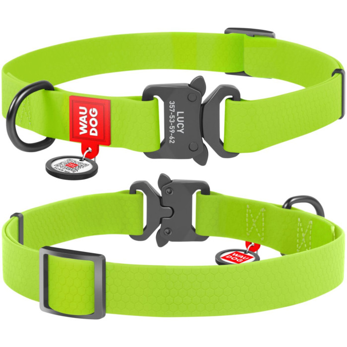 Нашийник WAUDOG Waterproof з QR паспортом, водостійкий, металева пряжка-фастекс, салатовий XL 35-58 см