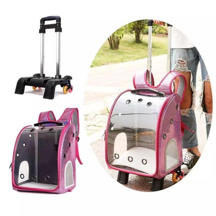 Переносний рюкзак на коліщатках для домашніх тварин 32х44х28, рожевий