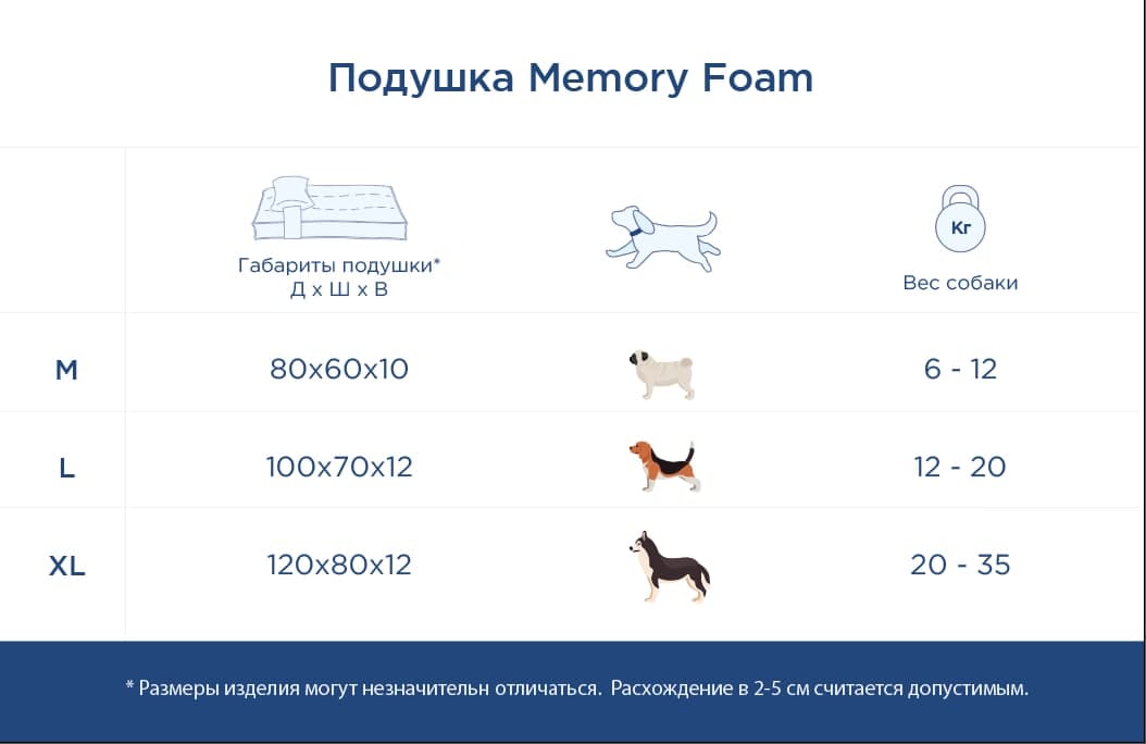 Суперкомфортний відпочинок для вашого собаки! Подушки з ефектом пам'яті Pillow Memory Foam захищають від проблем із суглобами, ідеально підлаштовуються під форму тіла та вагу вихованця.