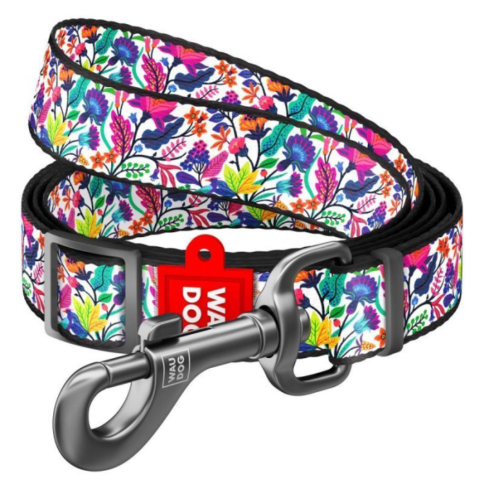 Повідець WAUDOG Nylon, регульований, малюнок "Чарівні квіти", 152-183 см.