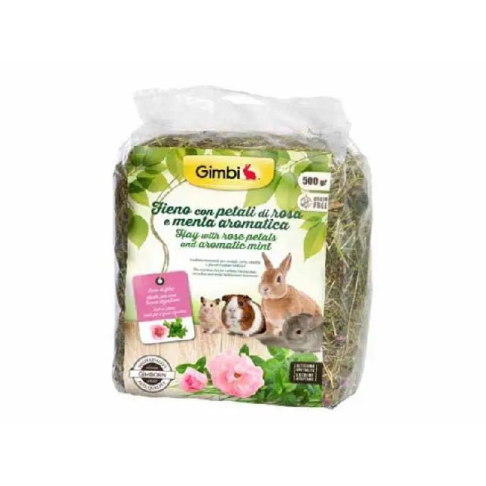Сіно для гризунів GRAIN FREE Gimbi з пелюстками троянд та ароматною м'ятою 500гр.