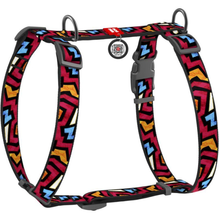 Шлея для собак анатомічний H-подібний WAUDOG Nylon з QR паспортом, з малюнком "Графіті" S 30-50см