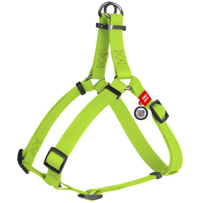 Шлея для собак водостійка WAUDOG Waterproof, c QR паспортом, металева пряжка-фастекс, Ш 15 мм, Дов 40-55 см салатовий