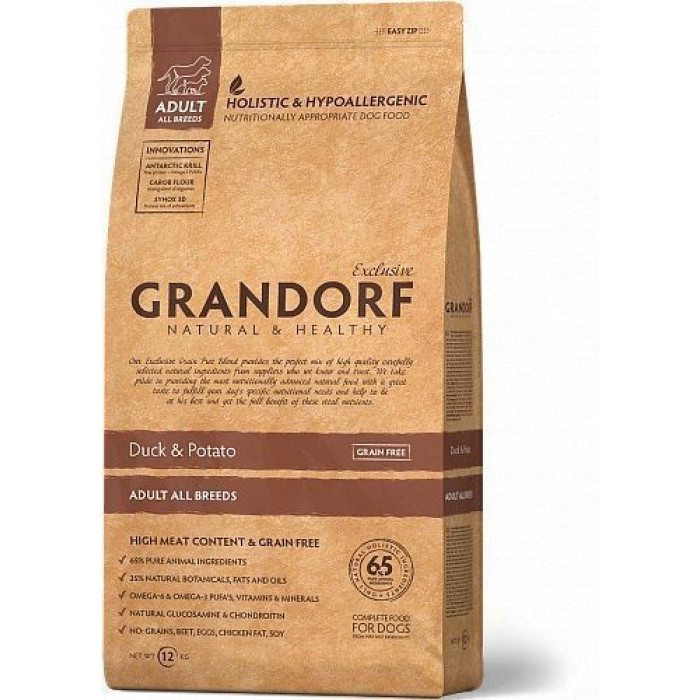 Чудовий натуральний беззерновий корм містить у складі 65% дієтичного м'яса качки та індички. Містить прості та легкозасвоювані корисні інгредієнти. Корм має чудовий і натуральний смак без додавання штучних ароматизаторів і багатий на всі необхідні вітаміни. Збалансований беззерновий склад задовольнить природну потребу в м'ясному харчуванні навіть найвибагливішого вихованця. Ретельний відбір інгредієнтів запобігає алергійним реакціям і харчовій непереносимості. Корисні та натуральні інгредієнти забезпечують відмінний фізичний стан та довге здорове життя Вашого вихованця.