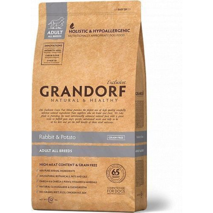 Чудовий натуральний беззерновий корм містить у складі 65% дієтичного м'яса кролика та індички. Містить прості та легкозасвоювані корисні інгредієнти. Корм має чудовий і натуральний смак без додавання штучних ароматизаторів і багатий на всі необхідні вітаміни. Збалансований беззерновий склад задовольнить природну потребу в м'ясному харчуванні навіть найвибагливішого вихованця. Ретельний відбір інгредієнтів запобігає алергійним реакціям і харчовій непереносимості. Корисні та натуральні інгредієнти забезпечують відмінний фізичний стан та довге здорове життя Вашого вихованця.